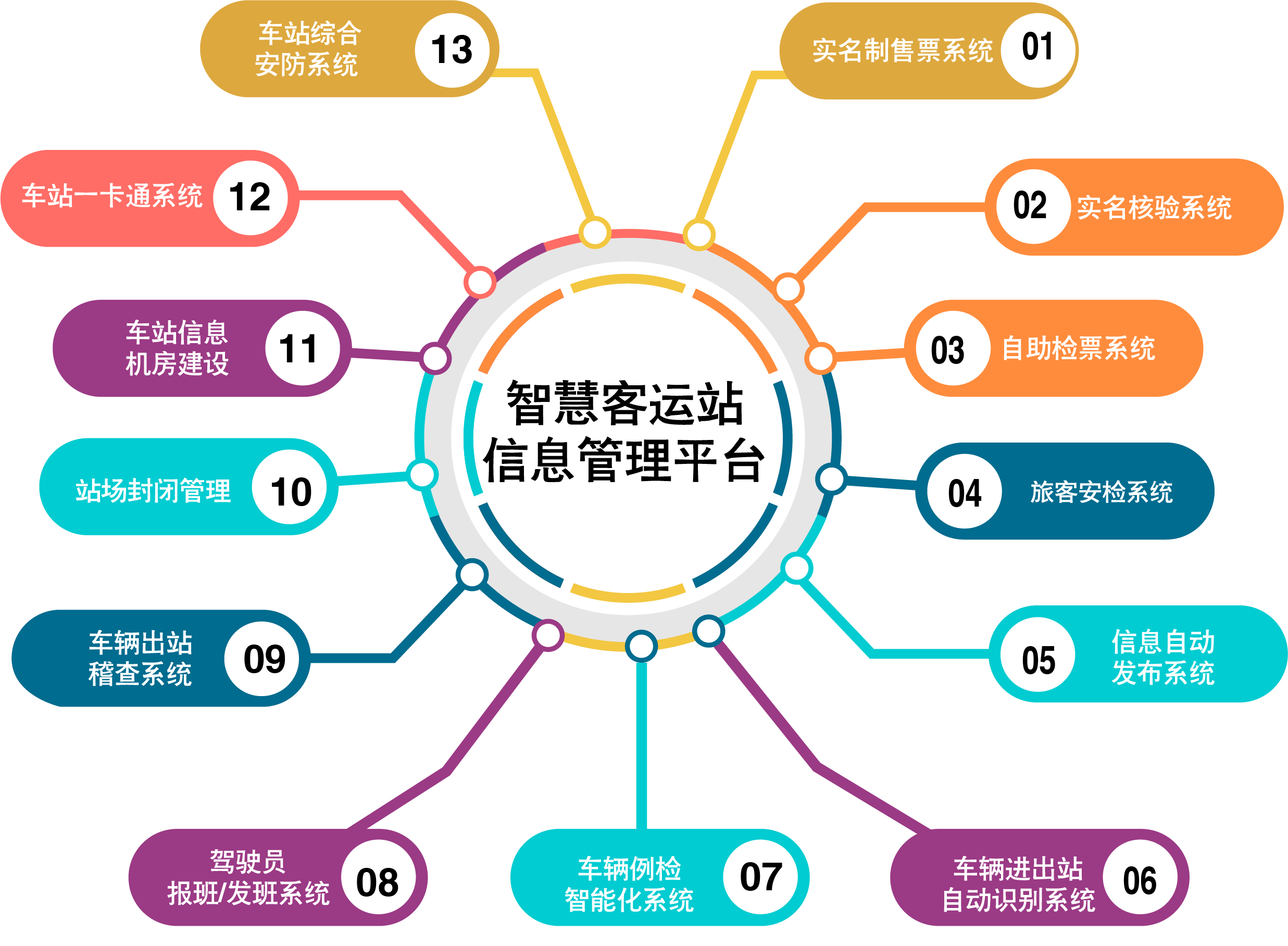 智慧客運站解決方案是基于道路運輸的“旅客”“駕駛員”“車輛”“站場”“配客點”五大管理要素,依托 “物聯網”“人工智能”“大數據”“云計算”等技術的運用,全新構建現代客運企業信息化運營綜合管理新模式。以集中的信息化管理平臺,先進的智能終端設備的運用,取代傳統的人工管理模式,打造“智慧站場”業務管理新模型、支撐客運企業經營管理能力的全面提升。該平臺以集團化業務資源為核心,以旅客體驗為目標,以運營安全高效為原則,以開放式互聯互通為基礎, 以數據深度挖掘與分享共贏為發展。最終支撐“新客運”實現“方便快捷、安全高 效”的品牌建設和發展目標。