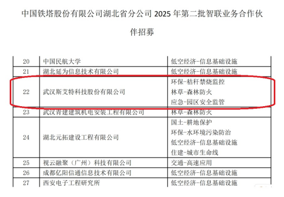 在線留言斯艾特科技成功入選中國鐵塔湖北分公司智聯業務合作伙伴